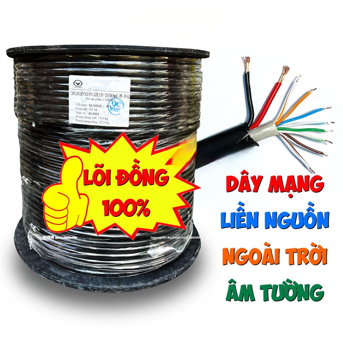 • Cáp mạng Vcom Cat5e UTP 8 lõi vỏ PE liền nguồn